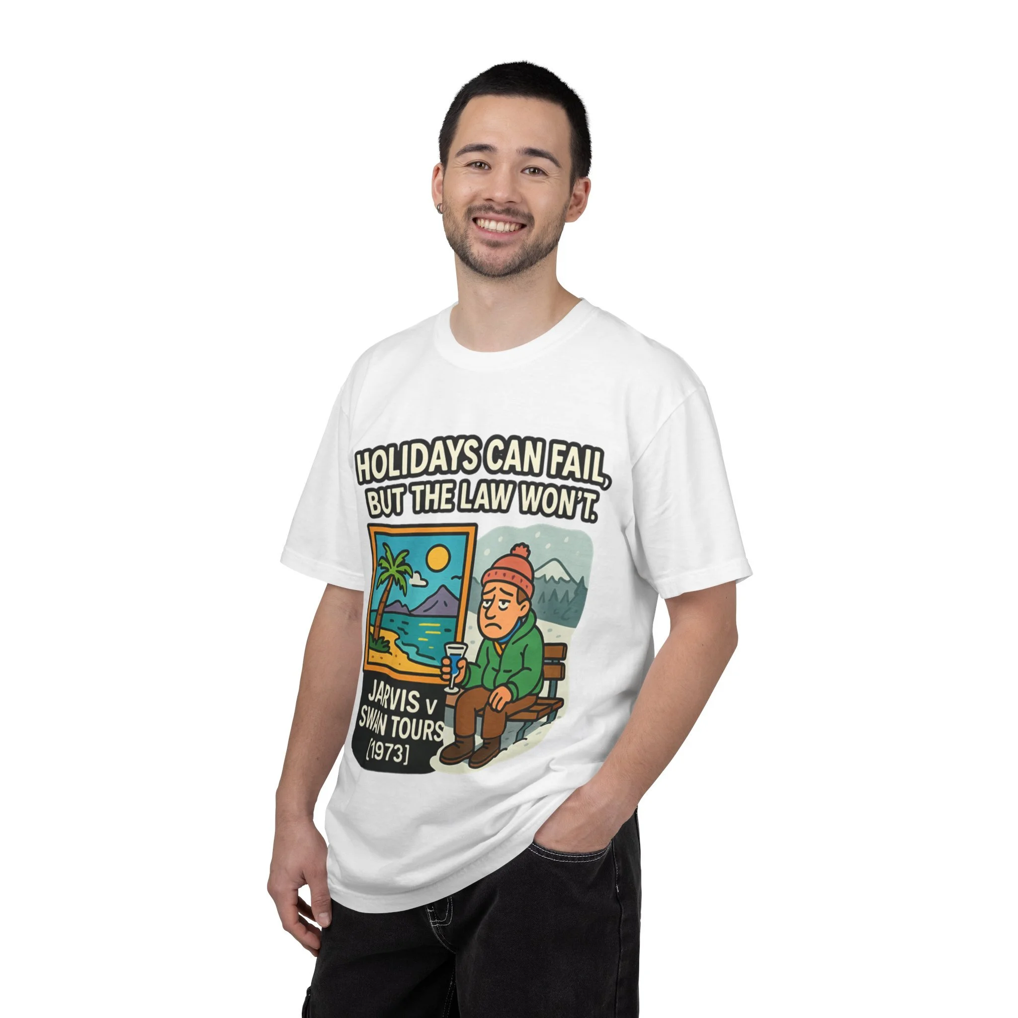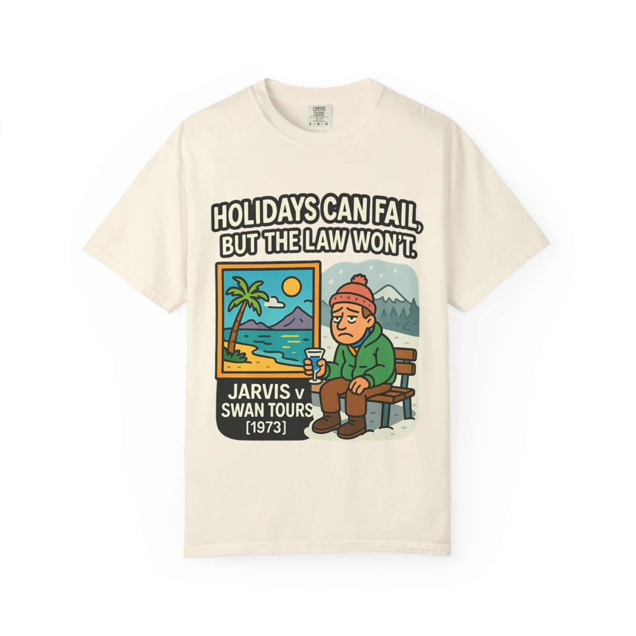 Can you sue for a bad vacation? In 1973, James Jarvis did—and he won. This premium, garment-dyed tee commemorates Jarvis v Swan Tours, the landmark case that fundamentally changed contract law by establishing that "mental distress" and "loss of enjoyment" are recoverable when a holiday fails to live up to its promises.